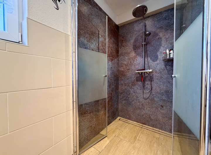 Weitere wertsteigernde Maßnahmen erfolgten im Jahr 2023 mit dem Bau der Terrasse inklusive Terrassenüberdachung und integrierter Beschattung, die den Außenbereich zu einem attraktiven Rückzugsort macht. Zusätzlich wurde eine Klimaanlage im Schlaf- und Wohnzimmer installiert, die auch an warmen Tagen für ein angenehmes Raumklima sorgt.