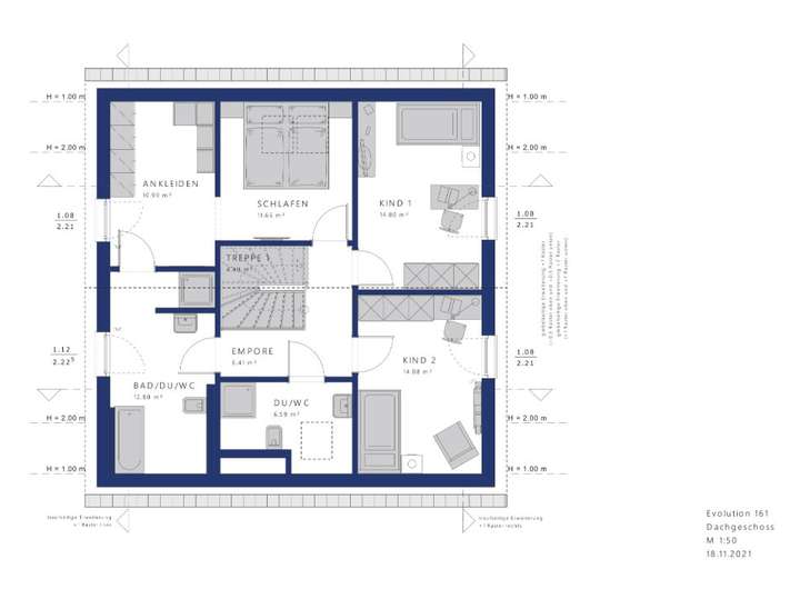 + Zimmermannsdachstuhl mit 200 mm Wärmedämmung, 3 verschiedene Dachneigungen und Kniestockhöhen im Grundpreis,