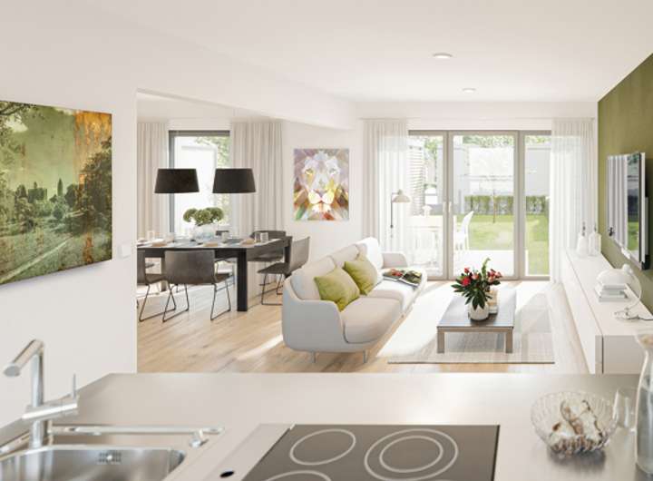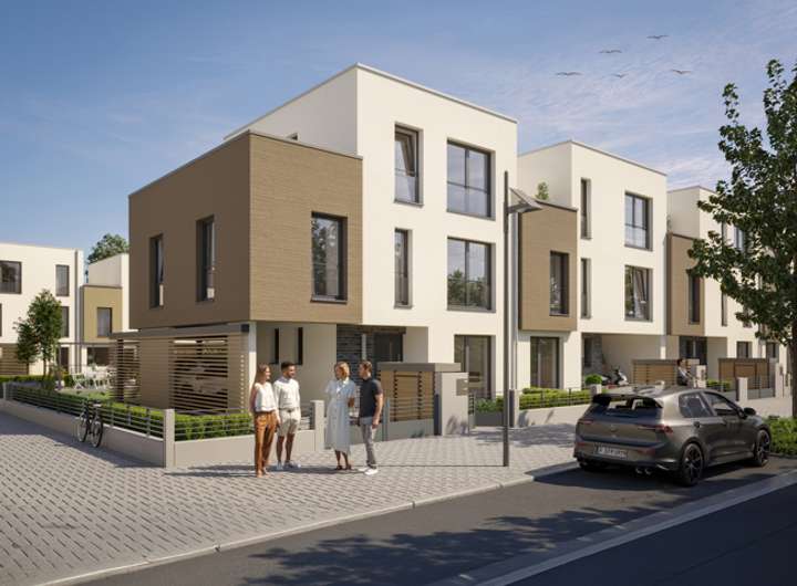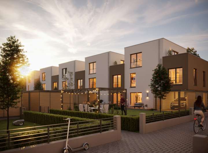 Im Inneren gibt die durchdachte Grundrissplanung auf drei Ebenen jedem Familienmitglied viel Raum für die individuelle Entfaltung. Großzügige Privatgärten sowie abgeschirmte Dachterrassen setzen das faszinierende Wohnerlebnis der eigenen "vier Wände" im Außenbereich fort – Freiheit pur! Besonderes Highlight: im Anschluss an die Gartenhütte befindet sich eine zusätzliche Terrasse als Freisitz, der in der wärmeren Jahreszeit vielfältige Nutzungsmöglichkeiten bietet.