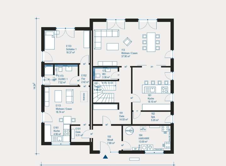 Entdecken Sie Ihr perfektes Traumhaus der Generation 13 - ein weitläufiges Wohnkonzept, das sämtliche Ihre Vorstellungen von einem Zuhause ideal umsetzt! Diese beeindruckende Immobilie bietet Ihnen über 200 m² Wohnfläche und schafft den Raum sowie den Komfort, den Sie sich stets gewünscht haben. Besonders hervorzuheben ist die barrierefreie Einliegerwohnung mit einer Nettogrundfläche von 53 m², die zusätzlichen Freiraum und Möglichkeiten zur Finanzierung eröffnet.
