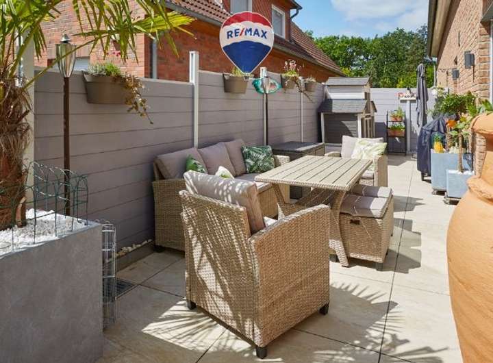 Der Außenbereich ist liebevoll gestaltet: Die großzügige Terrasse ist mit hochwertigem Feinsteinzeug belegt, ein gepflegter Garten mit Pultdach-Gartenhaus ist komplett eingezäunt und durch ein verschließbares Gartentor gesichert. Ein eleganter WPC-Sichtschutzzaun rundet das Bild ab. Alle relevanten Unterlagen, Rechnungen und Leitungspläne zum Haus sind vollständig vorhanden, sodass ein sorgenfreier Einzug gewährleistet ist.