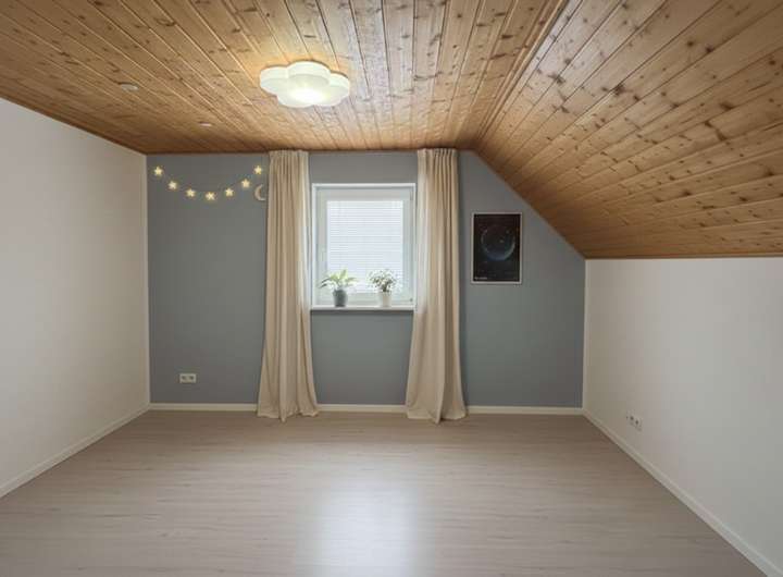 Die 3,5-Zimmer-Immobilie überzeugt durch einen durchdachten Grundriss auf zwei Etagen. Im Erdgeschoss befinden sich ein offener Wohn- und Essbereich sowie die Küche mit direktem Zugang zum Garten und zum Keller – ideal für Alltag und Gäste. Das Obergeschoss bietet ein modernes Tageslichtbad, zwei Schlafzimmer und einen großzügigen, hellen Flur mit viel Platz. Beheizt wird das Haus über eine effiziente Gas-Zentralheizung.