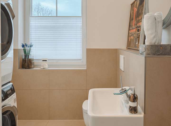 - Platz für Waschmaschine und Trockner sowohl im Keller als auch im Gäste-WC