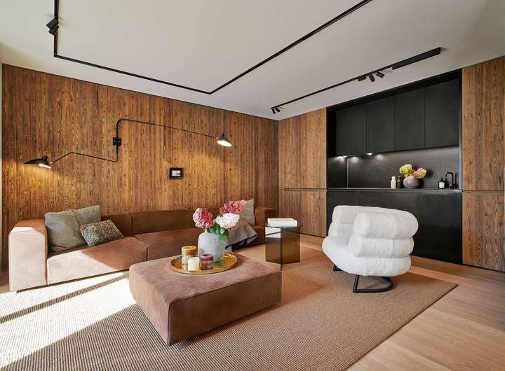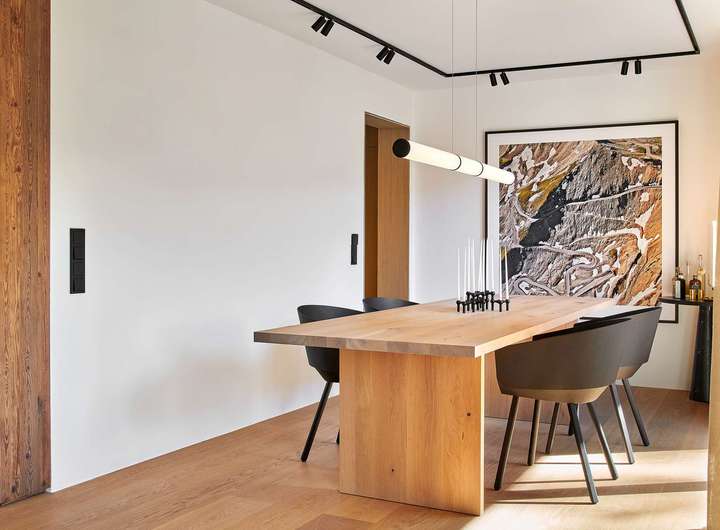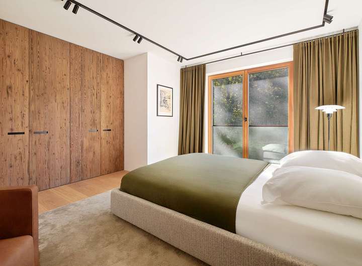 Dieses hochklassige Hideaway in absolut ruhiger und idyllischer Lage entstand 2022 im Rahmen einer Umgestaltung. Für das exquisite Interiordesign zeichnet der Münchner Innenarchitekt Justin Howlett verantwortlich, der 2024 von dem Premium-Magazin Architectural Digest in den Kreis der „Top 100 Kreativen“ aufgenommen wurde. Sorgfältig ausgewählte Handwerksbetriebe setzten Howletts detailreiche Entwürfe auf höchstem Niveau um. Makelloses Eichen-Dielenparkett, Einbauten mit Altholz-Fronten, eine elegante Schwarzstahl-Einbauküche, ein durchdachtes Lichtkonzept und exklusive Badgestaltung schaffen ein ebenso repräsentatives wie einladendes Ambiente.