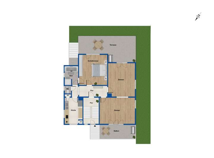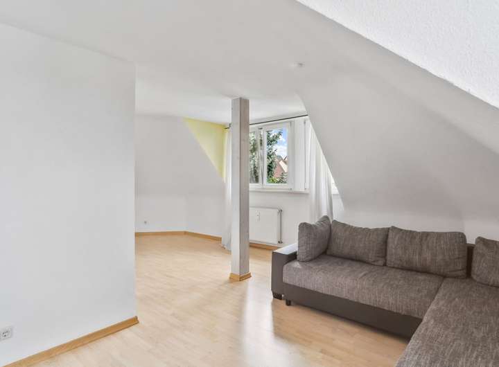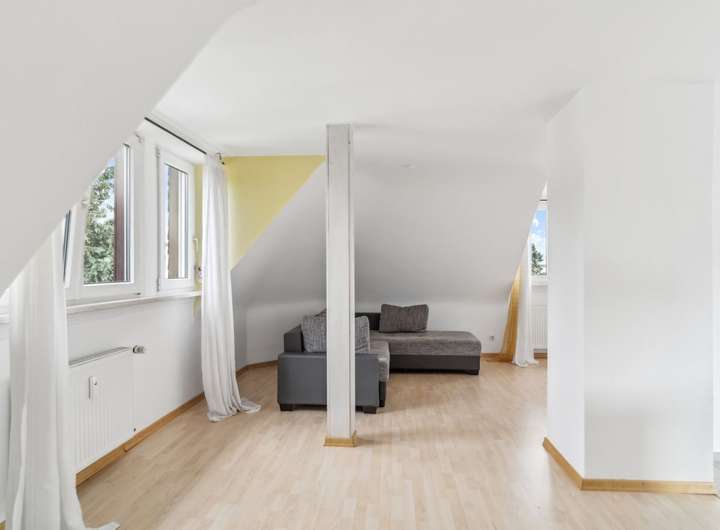 Aktuell befindet sich auf dem Grundstück eine Villa mit drei abgeschlossenen Wohneinheiten, die sich über Erdgeschoss, Obergeschoss und Dachgeschoss verteilen. Die Aufteilung ist funktional und großzügig, die Substanz solide. In den vergangenen Jahren wurden bereits verschiedene Maßnahmen durchgeführt, dennoch besteht Sanierungs- und Modernisierungsbedarf, insbesondere mit Blick auf heutige Wohnansprüche.