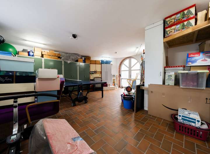 Die Doppelgarage bietet deutlich mehr als nur Raum für Fahrzeuge. Sie eignet sich hervorragend als Hobbywerkstatt, Lagerfläche für Handwerker, kleines Atelier, oder als geschützter Bereich für berufliche Materialien und Arbeitsgerät. Die integrierte Erweiterung aus dem Jahr 2006 schafft zusätzliche Nutzfläche, die viele individuelle Einsatzmöglichkeiten eröffnet, ideal für Menschen, die gerne kreativ arbeiten oder zusätzliche Ordnung benötigen.