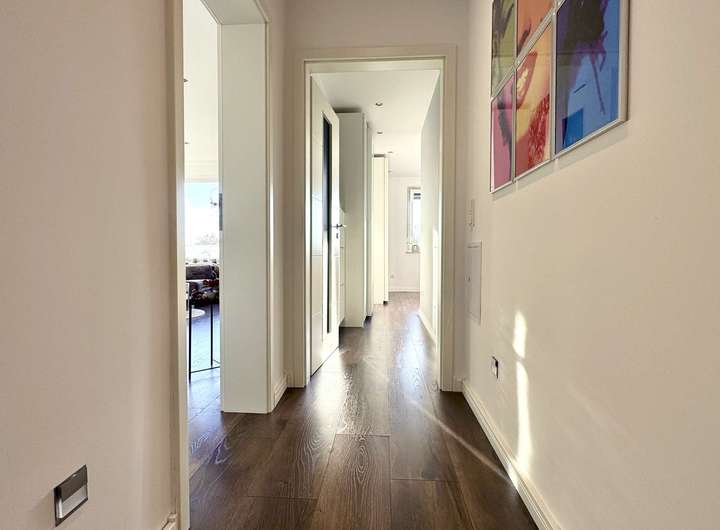Auf rund 96 m² Wohnfläche entfaltet sich ein offenes, helles Wohngefühl. Die Wohnung wurde im Zuge der Sanierung technisch wie optisch auf ein neues Niveau gehoben: sämtliche Leitungen, Wasser- und Elektroinstallationen, Bäder, Decken und der komplette Innenausbau wurden erneuert. Die abgehängten Decken – auch auf dem Balkon – unterstreichen den modernen Charakter und sorgen für ein ruhiges, stimmiges Gesamtbild.