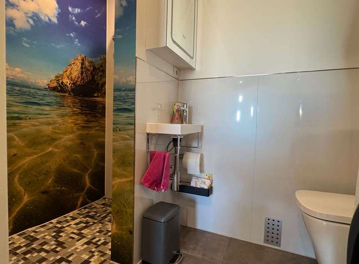 - Gäste-Bad: Separates Gäste-Bad mit Dusche, modern gestaltet.
