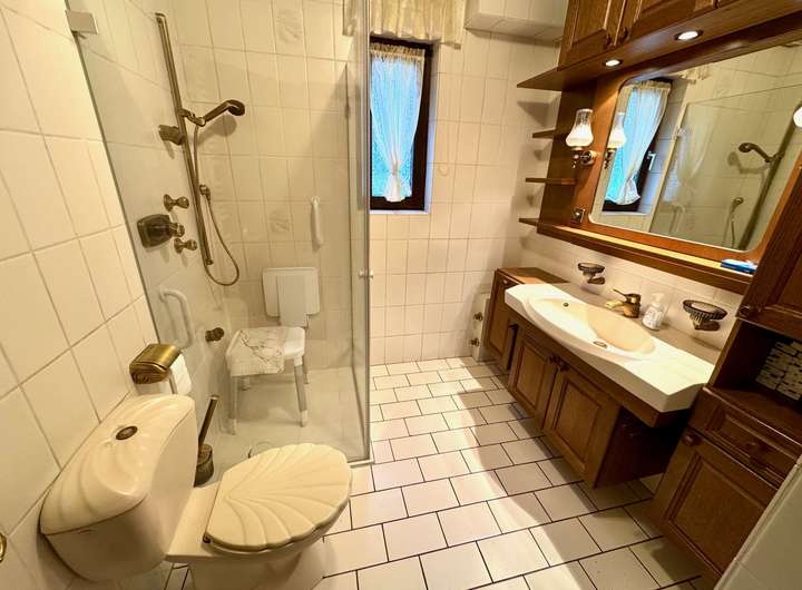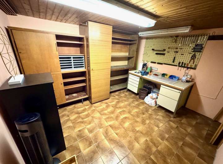 Im Kellergeschoss warten eine Werkstatt und ein Abstellraum, ein großer Hobbyraum mit gepflegter Sauna, sowie ein helles Badezimmer und ein schöner Fitnessraum. Hier können Sie Ihren Hobbies nachgehen oder die Freizeit genießen. Der Heizraum befindet sich ebenfalls auf dieser Etage.