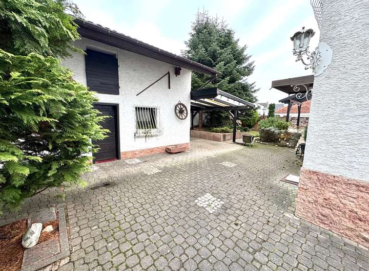 Auf dem Grundstück befindet sich eine Garage mit Stellplatz davor und 2 Stellplätze auf der Hoffläche. Das Grundstück liegt in einer ruhigen Seitenstraße von Okriftel.