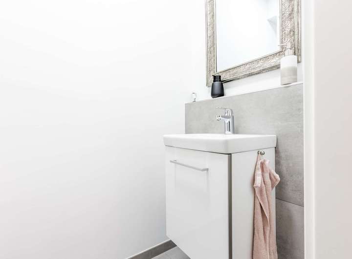 Vom Flur aus gelangen Sie zunächst in das moderne Gäste-WC.