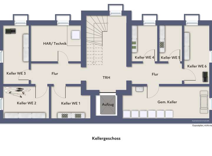 - Baukörper I ist unterkellert und bietet Kellerräume & Waschkeller