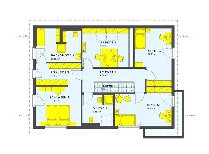 Dieses moderne Mehrgenerationenhaus von LivingHaus vereint stilvolle Architektur mit individueller Anpassbarkeit. Mit einer großzügigen Wohnfläche von 230 m² und insgesamt 9 Zimmern, darunter 4 Schlafzimmer und 4 Badezimmer, bietet es ausreichend Platz für die ganze Familie. Das Satteldach und der durchdachte Kniestock von 1,60 m im Obergeschoss ermöglichen dir kreative Gestaltungsmöglichkeiten. Der große Übereck-Erker im Erdgeschoss erweitert den Wohn- und Essbereich zu einem einladenden Raum, der nahtlos in den Garten übergeht. Stelle dir vor, wie du an einem sonnigen Tag frische Blumen pflückst und in deinem perfekten Zuhause entspannst. Bei LivingHaus hast du die Möglichkeit, dein Traumhaus nach deinen Wünschen und Vorstellungen zu gestalten. Neben der individuellen Planung profitierst du von einer Reihe zusätzlicher Dienstleistungen, die den Bauprozess vereinfachen und bereichern. Die Traumküche von LivingHaus wird exakt auf dein Zuhause abgestimmt, sodass du sofort nach dem Einzug mit modernster Technik und ästhetischem Design loslegen kannst. Mit dem Living Haus Bau-Cockpit hast du stets den Überblick über dein Bauprojekt - alles ist digital und einfach zugänglich. I-KON, das intelligente Bauen von LivingHaus, sorgt dafür, dass dein Zuhause nicht nur schön, sondern auch energieeffizient ist. Dank des Zuhause-Darlehens erhältst du finanzielle Unterstützung zu attraktiven Konditionen, und das Zuhause-Paket bringt dir eine hochwertige Grundausstattung mit modernen Materialien. Wenn du den Innenausbau selbst in die Hand nehmen möchtest, steht dir das DIY-Ausbau-Coaching zur Verfügung, wo Experten dir wertvolle Tipps geben. Mit LivingHaus wird dein Traum vom eigenen Haus Wirklichkeit - und das, wie du es dir wünschst!