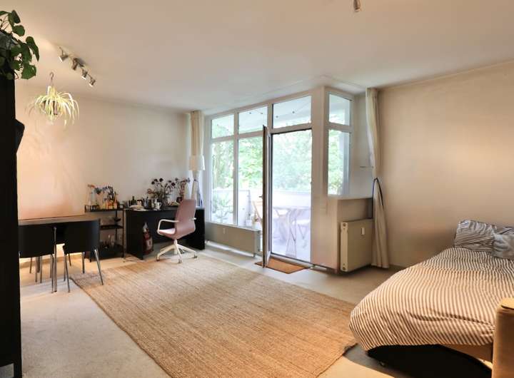 Die zum Park hin ausgerichtete Wohnung befindet sich im 1. Obergeschoss und ist bequem über das Treppenhaus zu erreichen. Eine Wohnfläche von ca. 40,58 m² verteilt sich auf einen Flur; ein zeitlos gefliestes Duschbad mit Waschmaschinenanschluss; ein Wohn-/Schlafzimmer nebst einem süd-westlich ausgerichteten, ruhigen Balkon mit Blick ins Grüne und Platz zum Entspannen, sowie eine Küche, ausgestattet mit einer Einbauküche und mit Platz für eine Sitzgelegenheit. Diese ist vom Wohn-/Schlafzimmer zugänglich.