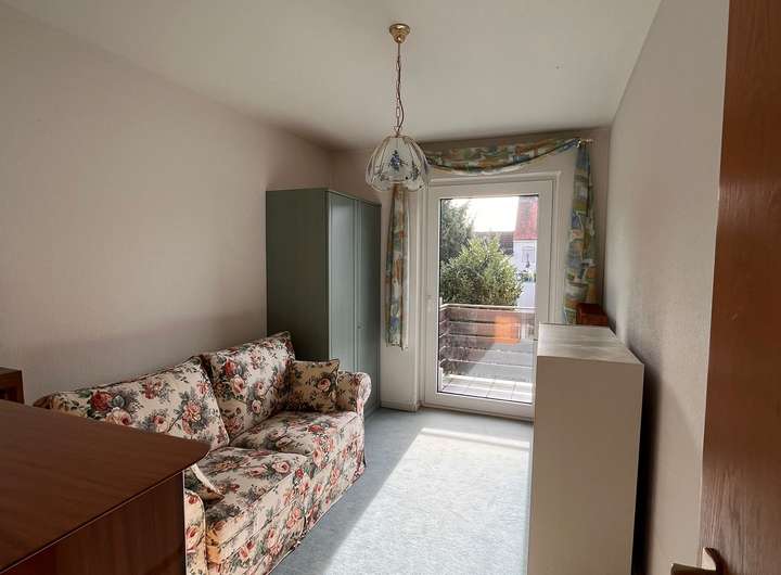 - Obergeschoss: Flur, 3 Schlafzimmer (2x Südseite mit Balkon und 1x Nordseite), Badezimmer (mit Fenster, Doppelwaschbecken, Wanne, Dusche und WC).