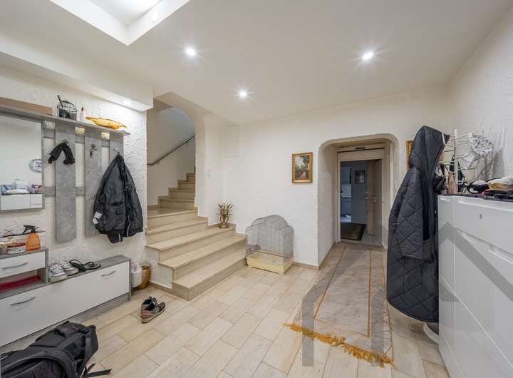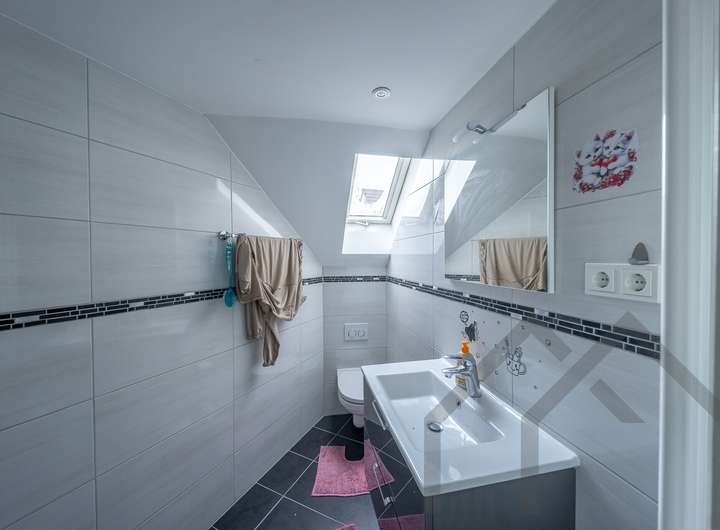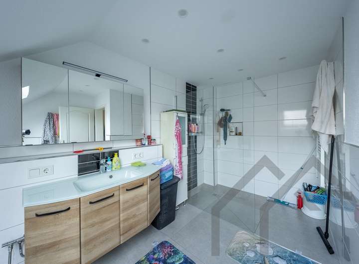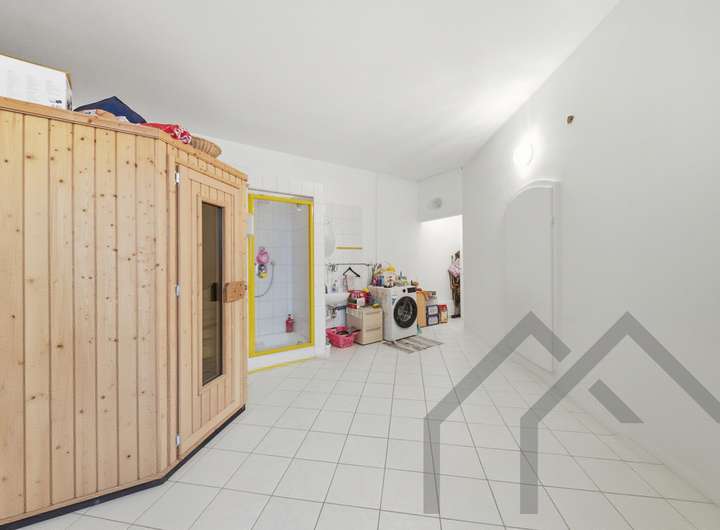 Ein zusätzlicher Raum ergänzt diese Ebene und bietet neben Stauraum auch eine Dusche, ein Waschbecken sowie eine nahezu unbenutzte Sauna. Dieser Bereich eignet sich ideal als funktionale Ergänzung des Wohnraums und als privater Rückzugsort. Die Garage ist direkt vom Haus aus begehbar und ermöglicht kurze und praktische Wege.