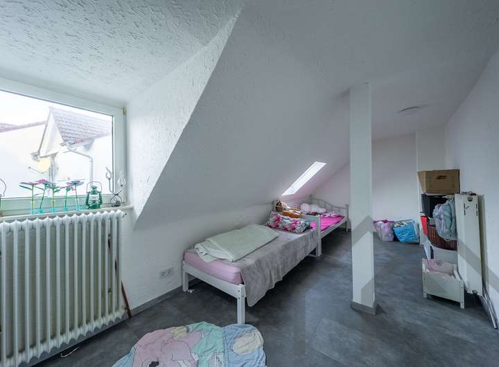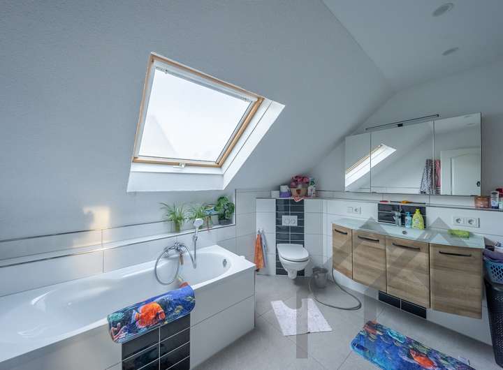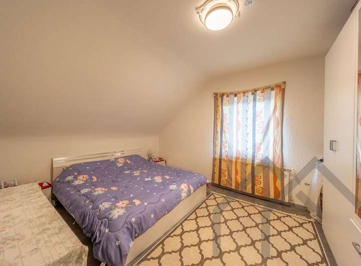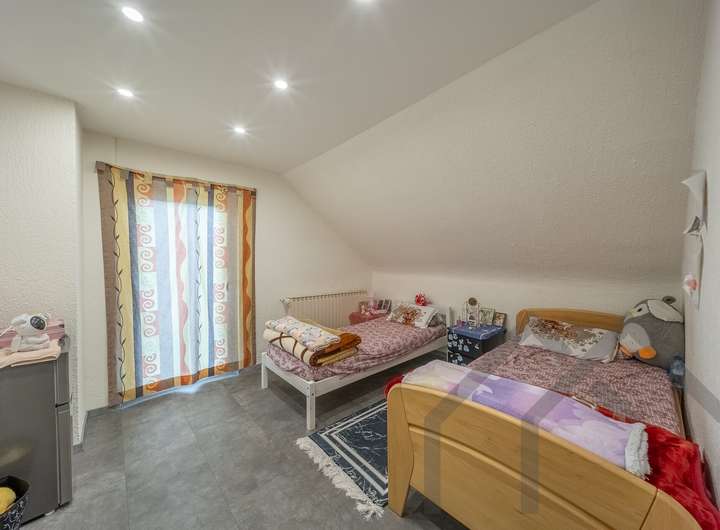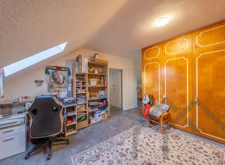 Im Obergeschoss stehen insgesamt fünf Zimmer zur Verfügung, eines davon als Durchgangszimmer, welches sich ideal als Büro oder Ankleide nutzen lässt. Ergänzt wird diese Ebene durch ein Badezimmer mit Badewanne und großzügiger Dusche sowie ein separates Duschbad. Vom Schlafzimmer aus ist der Balkon zugänglich und schafft einen angenehmen privaten Außenbezug.