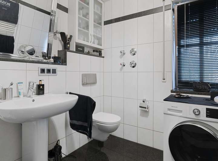 + Waschmaschinenanschluss komfortabel im Badezimmer integriert