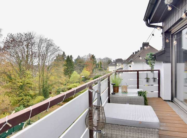 Großer Balkon nach hinten raus, ganztägig Sonne.
