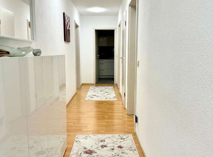 Beim Betreten der Wohnung werden Sie von einem einladenden, langen Flur empfangen, der Sie zu den hellen und geräumigen Zimmern führt. Ein besonderes Plus für den Alltag ist die praktische Aufteilung der Sanitärräume: Badezimmer und WC sind getrennt voneinander untergebracht. Das Badezimmer selbst überzeugt mit einem großen Fenster, das für viel Tageslicht und eine angenehme Belüftung sorgt.
