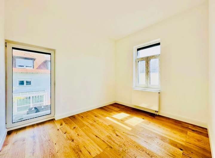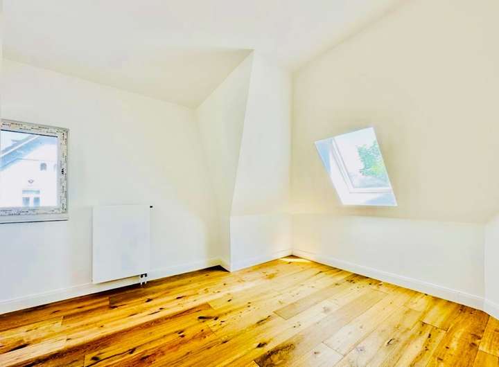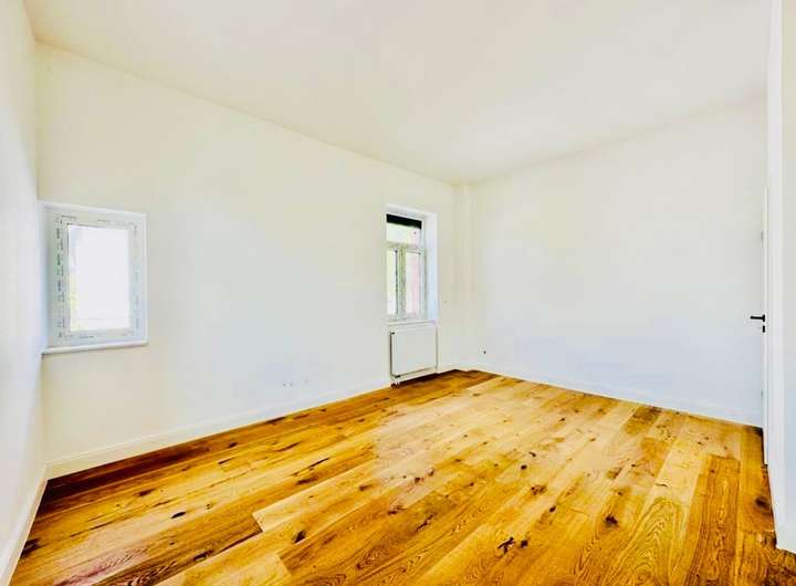 Die Ausstattung entspricht durchgehend dem gehobenen Qualitätssegment. Alle Fenster wurden durch dreifach verglaste Schüco-Fenster ersetzt und mit elektrischen Rollläden inklusive Etagenzentralsteuerung ausgestattet – aus technischen Gründen ausgenommen im Dachgeschoss. In allen Zimmern wurden TV- und Netzwerkanschlüsse integriert, die Bäder erhielten Sanitärobjekte und Armaturen deutscher Markenhersteller, und die frisch verputzten Wände wurden mit hochwertigen Vliestapeten versehen.