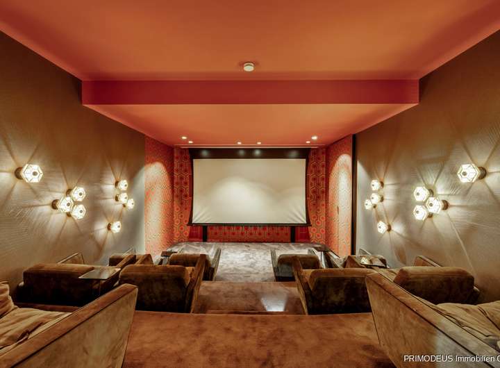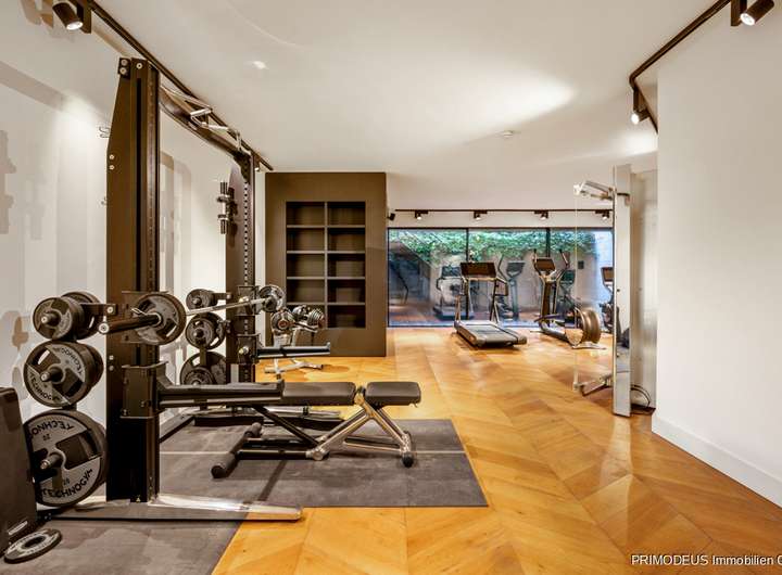 Das Untergeschoss überzeugt mit Heimkino, Weinschrank, Wellnessbereich mit Dampfbad und Fitnessraum sowie einem Panikraum. Eine separate Einliegerwohnung bietet Platz für Gäste oder Personal.