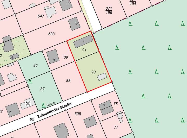 Das Verkaufsobjekt besteht aus dem Flurstück Nr. 90 (723 m²) und Nr. 91 (482 m²), Flur 3 der Gemarkung Fichtenwalde mit einer Gesamtgröße von 1.205 m².