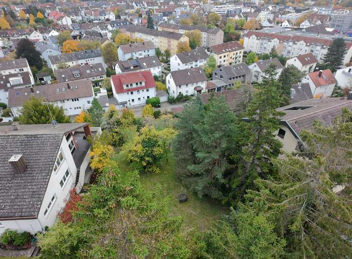Die zentrumsnahe wie auch verkehrsgünstige Lage kombiniert urbanes Leben mit der Rückzugsmöglichkeit auf großzügigen 645QM, mit schönem Baumbestand und Aussicht Richtung Stadt und Wald.