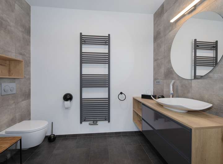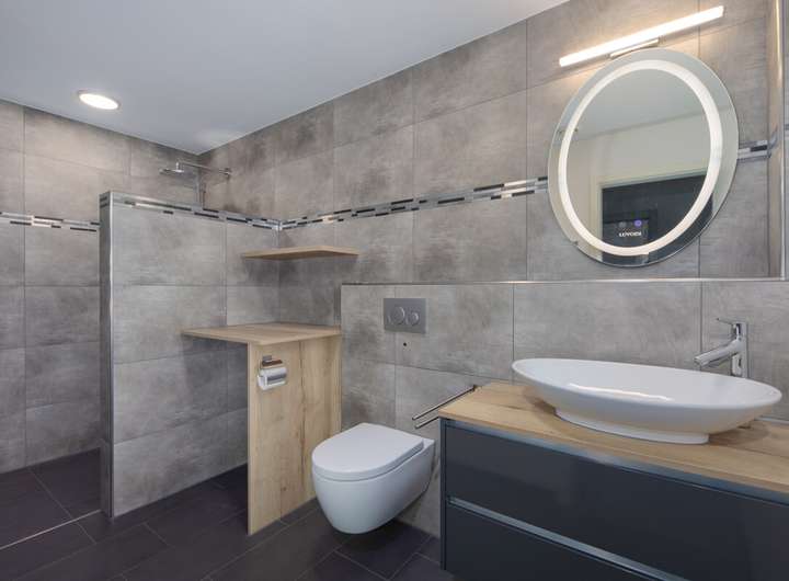 Die Einliegerwohnung mit einer Wohnfläche von ca. 47,29 m² verfügt über ein gemütliches Wohnzimmer mit offener, moderner Küche, ein Schlafzimmer sowie ein stilvolles Badezimmer mit ebenerdiger Dusche. Ein separater Eingang und eine eigene Terrasse sorgen für Privatsphäre und machen die Einheit ideal für Gäste, Angehörige oder zur Vermietung.