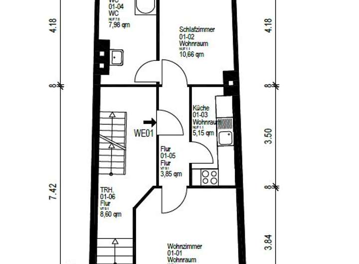 Es besteht aus einem Vorderhaus (4 Wohnungen)und einem begrünten Innenhof.