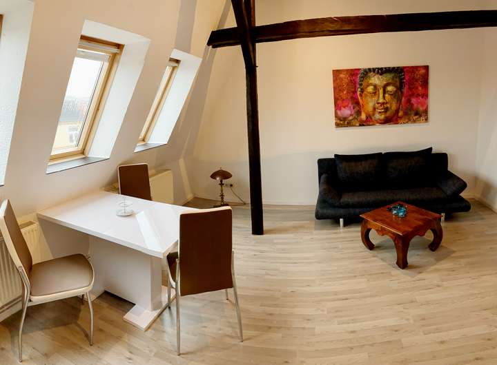 Zum Verkauf steht ein saniertes Mehrfamilienhaus mit insgesamt vier möblierten Wohnungen.