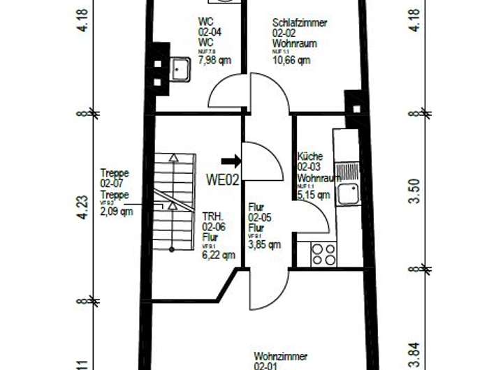 3. Wohnung: 2-Zimmerwohnung, 2. OG, ca. 45,38 m² Wohnfläche