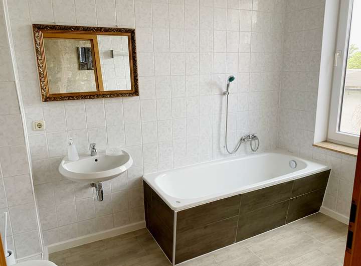- Die Bäder haben Badewannen, Fenster und WM-Anschlüsse