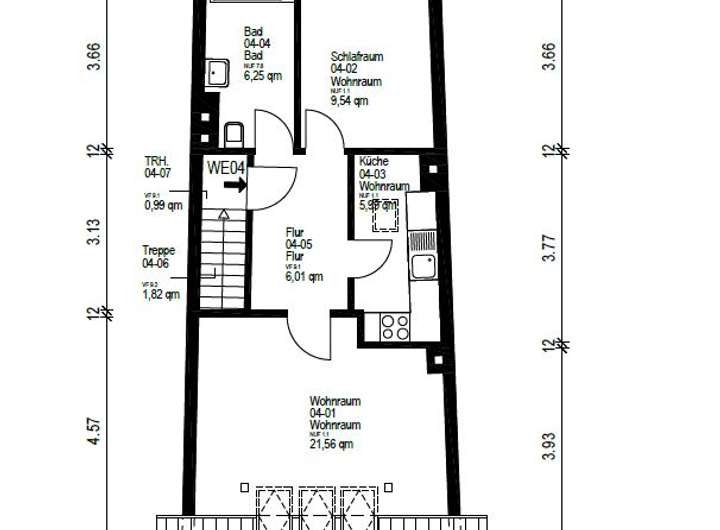 4. Wohnung: 2-Zimmerwohnung, DG, ca. 49,35 m² Wohnfläche