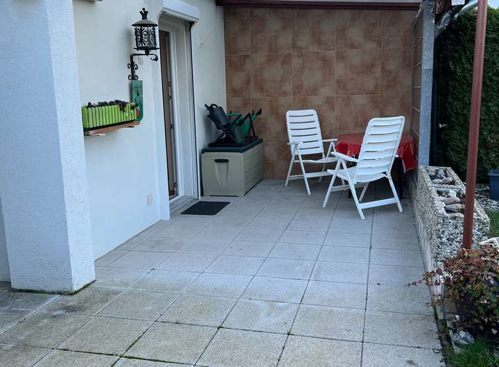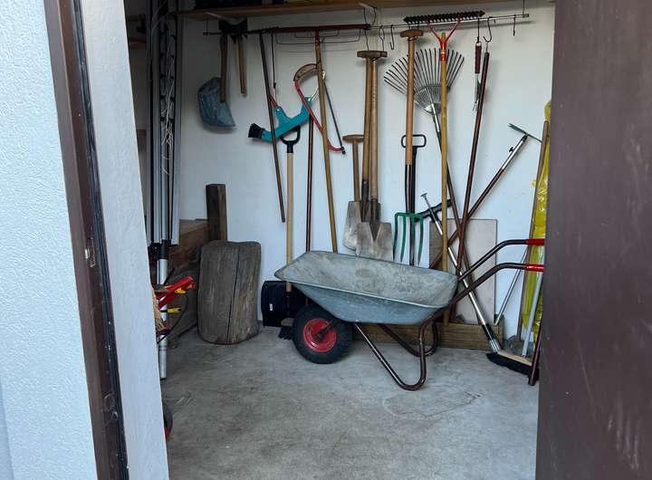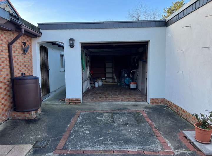 Von der Terrasse hat man Zugang zum idyllischen Garten. Ein weiterer Zugang zum Garten befindet sich vom Hof aus zwischen Anbau und Garage. Rückseitig an die Garage ist ein kleiner Abstellraum angebaut, in dem praktischerweise die Gartengeräte verstaut werden können.