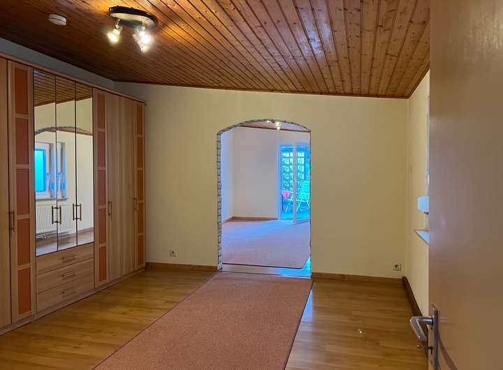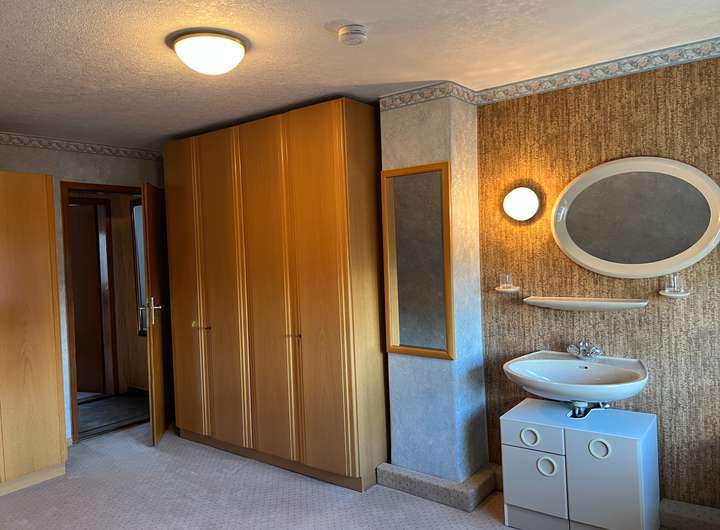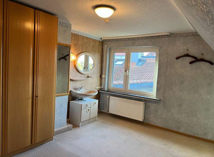 Das Schlafzimmer verfügt über ein Waschbecken. Hier könnte ggf. ein weiteres kleines Bad entstehen.