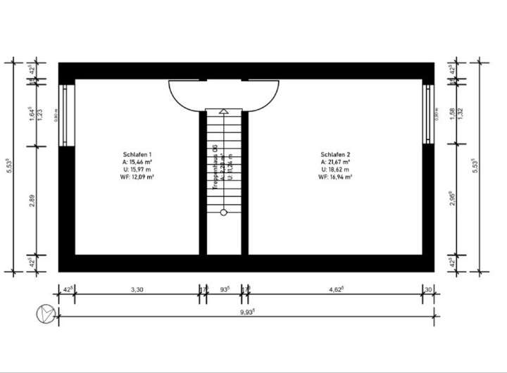 Vom oberen Treppenpodest erreicht man über eine Luke den Dachboden mit Stehhöhe. Hier würde sich für Kinder eine Schlafebene mit Zugang aus den jeweiligen Zimmern einrichten lassen. Somit könnte ein separater Kinderbereich entstehen.