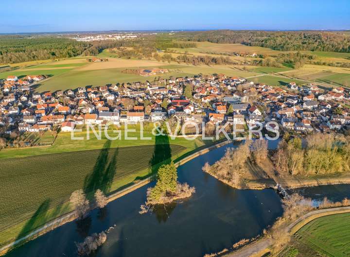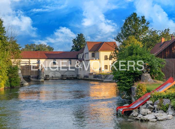 Das Grundstück liegt leicht erhöht und garantiert eine freie, atemberaubende Panoramaaussicht direkt auf den Flusslauf der Amper und die umgebende Natur. Dieser Blick ist unverbaubar und bietet ein ständig wechselndes, lebendiges Bild. Die direkte Flusslage ermöglicht zudem die Beobachtung der lokalen Vogelwelt, wie beispielsweise der Gänse während des Jahreszeitenwechsels.