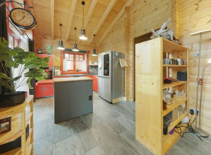 Dieser 2022 erbaute Bungalow in hochwertiger Holzbauweise verbindet modernes Wohnen mit wohligem Naturgefühl. Schon beim Betreten spürt man die warme Atmosphäre, die das Holz ausstrahlt, während die ebenerdige Architektur ein komfortables, barrierearmes Leben ermöglicht.