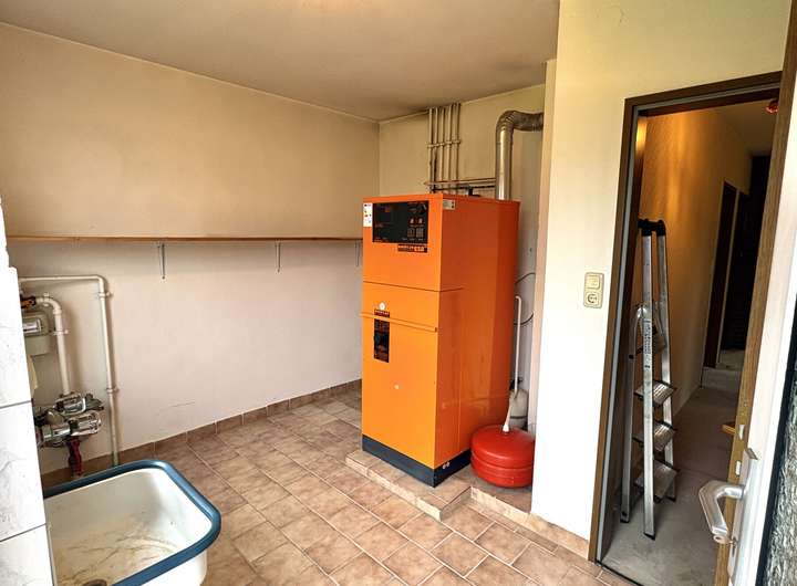 Über eine Hintertür erreicht man den Hauswirtschafts- und Heizungsraum, der ebenfalls in den Flur führt.