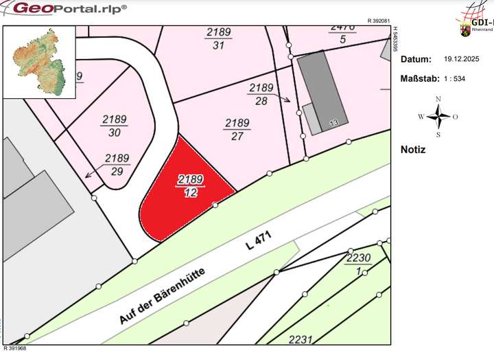 Verkauft wird das in den beigefügten Plänen mit "Bauplatz Nr. 6" bezeichnete, voll erschlossene Grundstück, Flurstück Nr. 2189/12 mit einer Größe von ca. 457 m² im Wohnpark "Bärenhütte" in Nünschweiler.