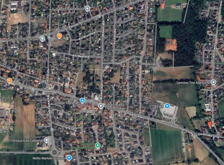 Das Einfamilienhaus befindet sich in einer ruhigen Nebenstraße, die in einer Sackgasse endet. Die zentrale Lage im schönen Ort Calberlah (5.200 Einwohner) im Landkreis Gifhorn macht das Haus sehr attraktiv. Die Entfernung zum Ortskern beträgt nur ca. 400 m, in dem die komplette Infrastruktur abgedeckt ist. In wenigen Minuten erreicht man auch bequem fußläufig mehrere Supermärkte, Ärzte, Banken, eine Apotheke, Sport- und Schuhfachgeschäft, sowie eine Tankstelle, Restaurants sind ebenfalls mehrfach vorhanden.
