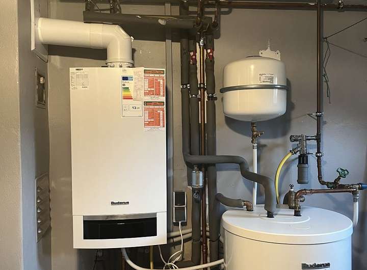 2021: neue Gasbrennwerttherme mit Warmwasserspeicher