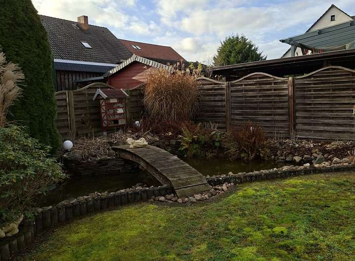 Im Außenbereich befinden sich eine geschlossene Garage mit anliegender Werkstatt / Hobbyraum, ein kleiner Geräteschuppen mit Wasserbrunnen, ein gut erhaltenes Gartenhaus, sowie ein kleiner Gartenteich. Ihr Fahrzeug können Sie wettergeschützt in der gemauerten Garage abstellen. Auf der Zufahrt befinden sich weitere Parkplätze für ein Zweitfahrzeug oder Besucher.