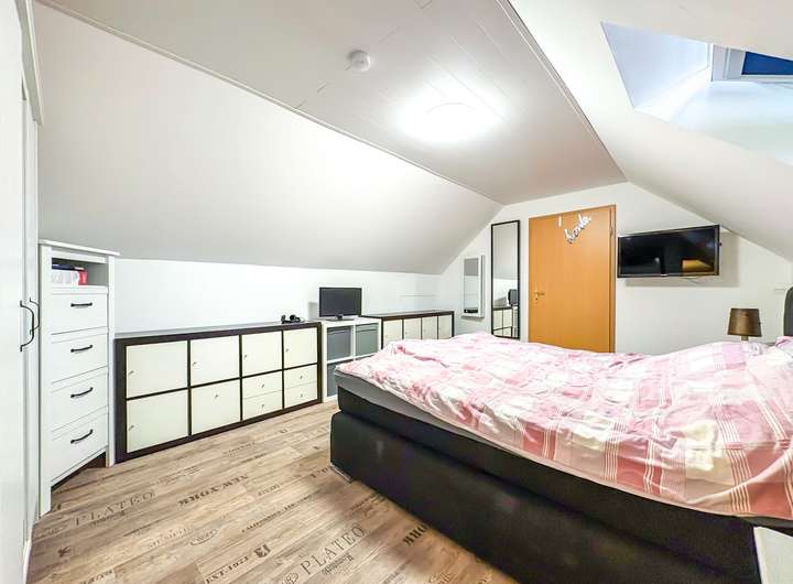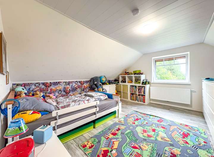 Im Obergeschoss erwarten Sie gemütliche Schlafzimmer, und viel Raum für Individualität – vom Kinderzimmer bis zum Homeoffice.