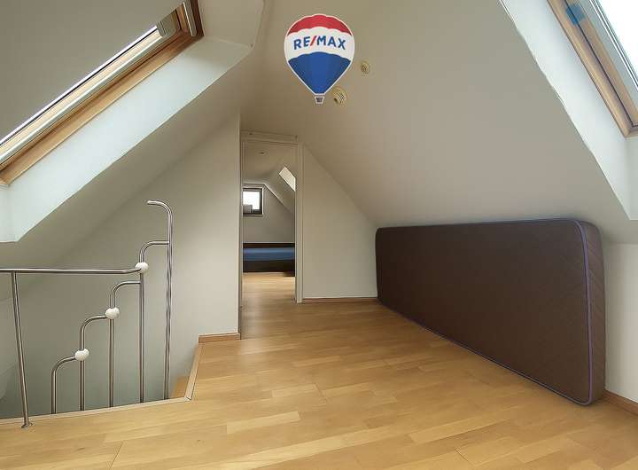 Der Mittelpunkt des ersten Obergeschosses ist die großzügige Küche mit Kochinsel, die durch ihre offene Gestaltung und repräsentative Wirkung sofort beeindruckt. Neben den vier großzügigen Schlafzimmern, lässt sich das Wohnzimmer erweitern, indem die Wand zum angrenzenden Schlafzimmer entfernt wird. Der Spitzboden kann flexibel als Büro, Hobbyraum oder zusätzlicher Stauraum genutzt werden.