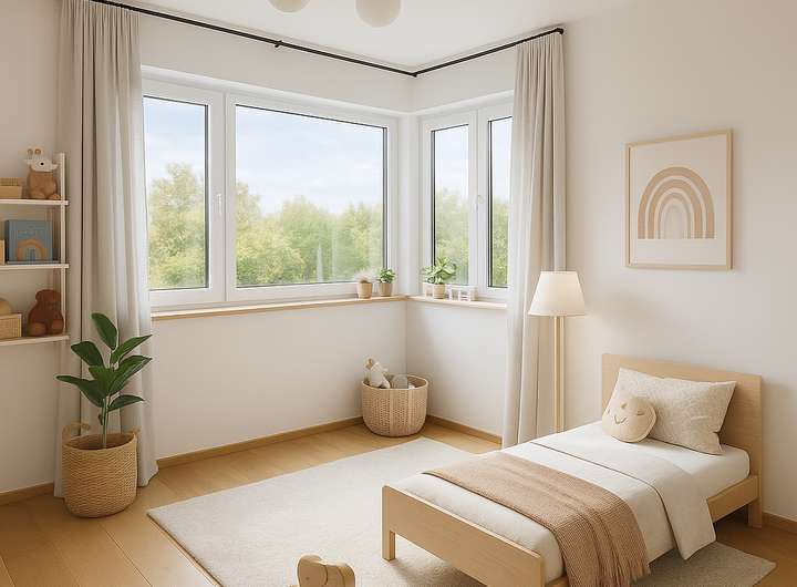 Eine Fußbodenheizung in allen Räumen sorgt dabei für gleichmäßigen Komfort.