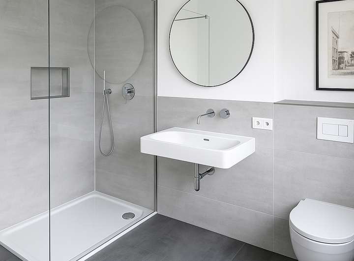 Im Sanitärbereich überzeugen Kaldewei-Sanitärelemente sowie Dornbracht-Unterputzarmaturen der Serie Meta – ein Inbegriff von Qualität und Design.