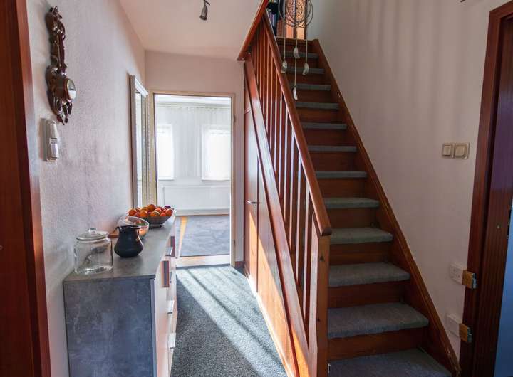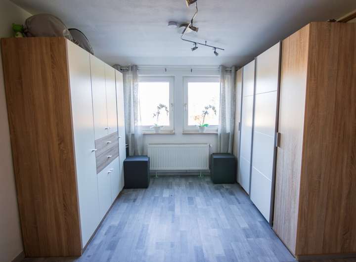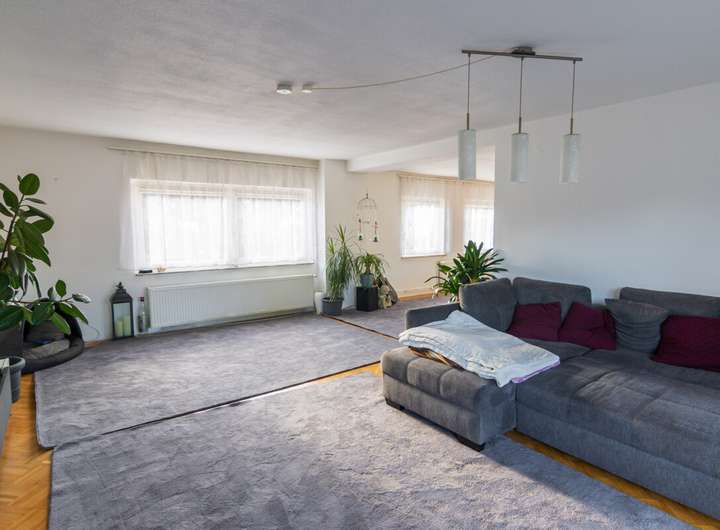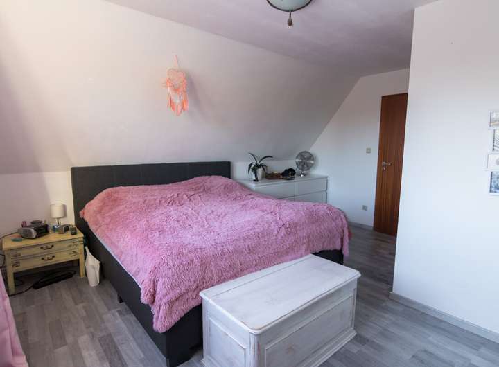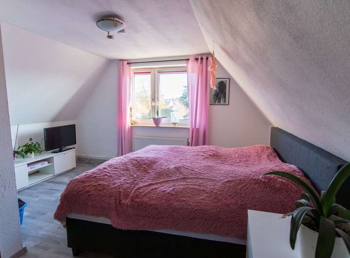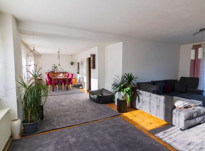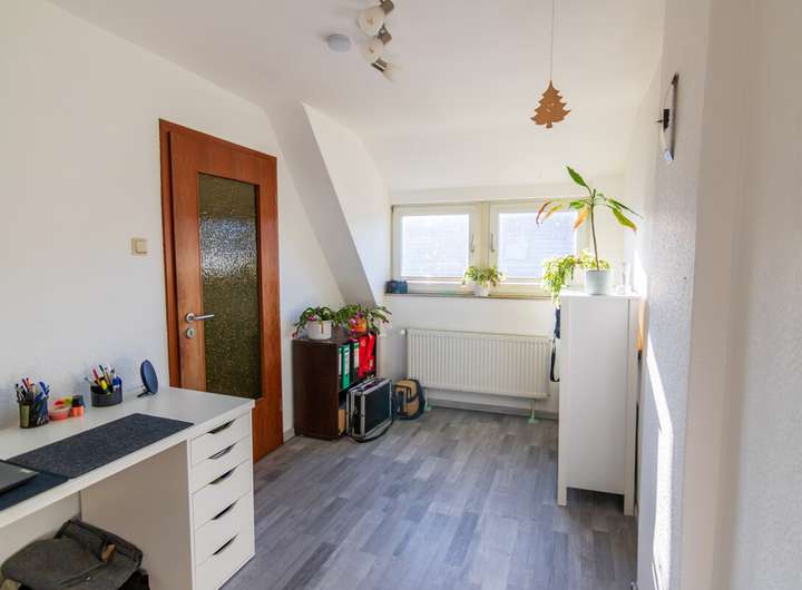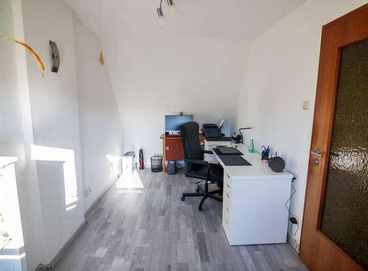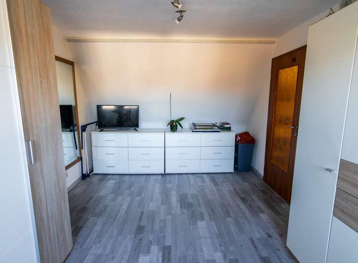 Parkettboden im Wohnzimmer, Laminat in den Wohnräumen im Dachgeschoss