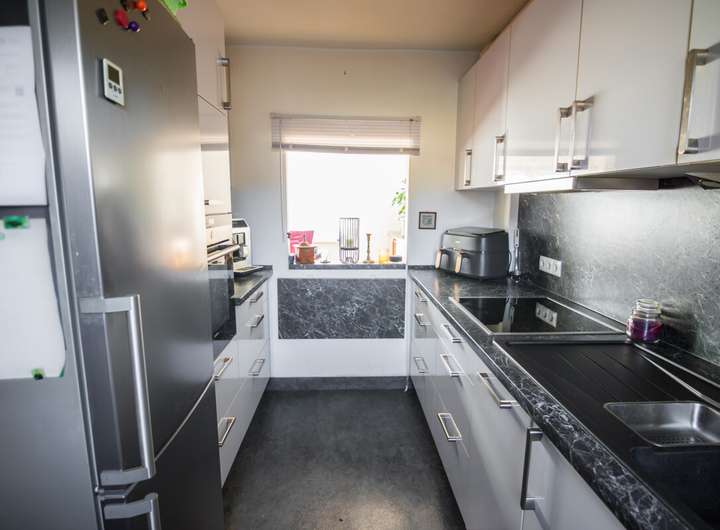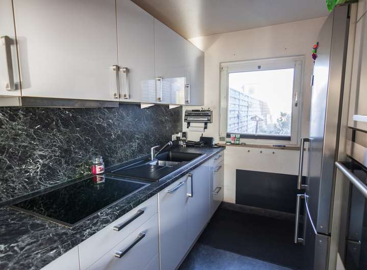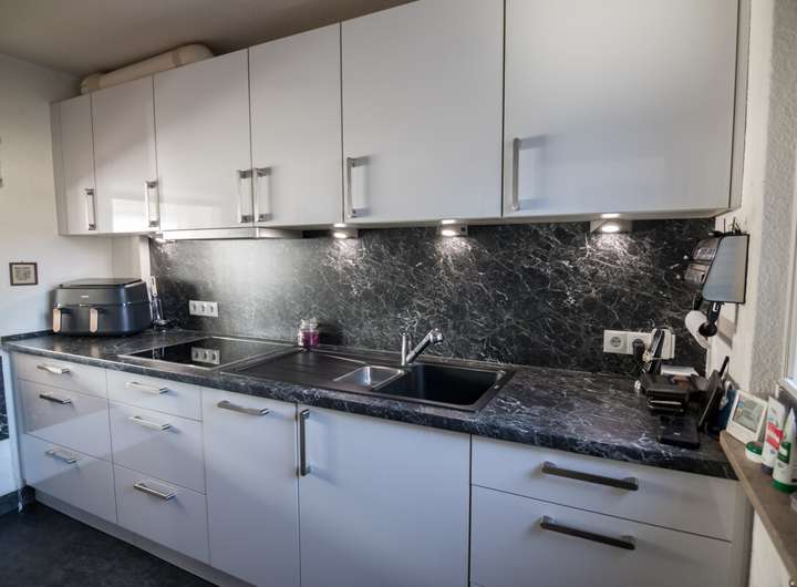 Einbauküche mit weißer Front und modernen Elektrogeräten aus 2018